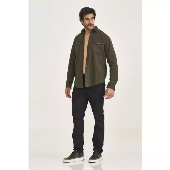 Descubra a elegância e o conforto da Camisa Masculina Sarja Verde - 29224 Esta peça é perfeita para garantir um look despojado e sofisticado, sendo ideal para diversas ocasiões, desde um passeio casual até eventos mais formais.