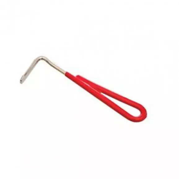 Limpador de cascos importado Partrade. Produto produzido em aço e revestido em borracha. Ponta bico para melhor higienização dos cascos. Cabo 10cm.